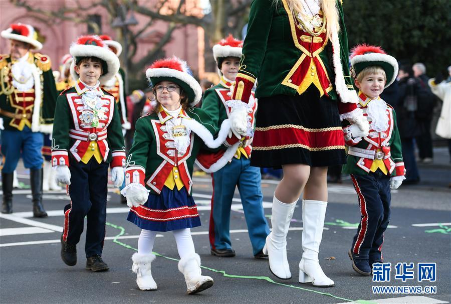 1月1日,在德國美因茨,孩子們參加新年游行活動。新華社記者逯陽攝