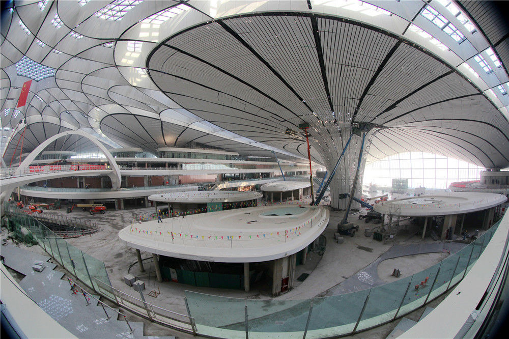 2019年5月24日,北京,新機場建設(shè)距離竣工時間還有37天,工程進入倒計時。機場開建至今不到5年時間,機場施工工程將于6月底竣工,將于9月底投入運營,該機場有望成為世界上規(guī)模最大的機場之一。任振朝/千龍圖像/視覺中國
