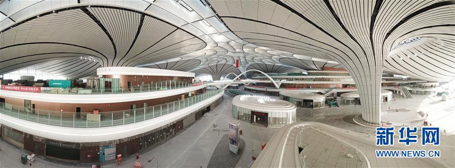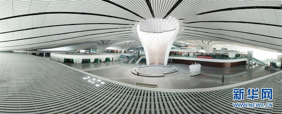 2019年4月26日,北京大興國際機場將于9月底正式通航。工程建設(shè)進入總攻階段,目前,航站樓內(nèi)部裝飾進行收尾的工作。武輝/千龍圖像/視覺中國