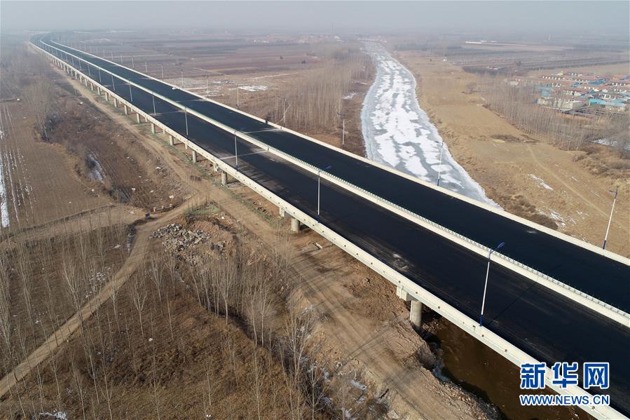 這是1月3日拍攝的北京大興國際機場北線高速公路廊坊段龍河特大橋(無人機照片)。新華社記者牟宇攝