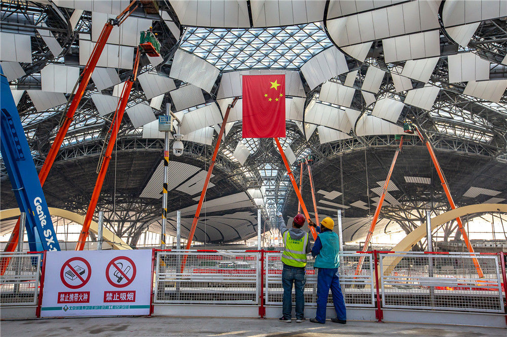 2019年1月20日,北京,探訪北京大興國際機場航站樓,建設(shè)工地正在如火如荼地有條不紊地建設(shè)之中。丁幫學/千龍圖像/視覺中國