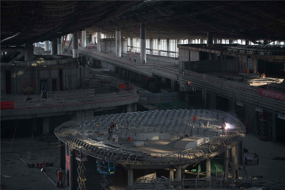 2018年8月30日,北京,攝影師在媒體開(kāi)放日拍攝到北京大興在建新機(jī)場(chǎng)的航站樓內(nèi)部構(gòu)造。該機(jī)場(chǎng)預(yù)計(jì)將于2019年完工,屆時(shí)將成為世界上最大的機(jī)場(chǎng)之一。NICOLAS ASFOURI /視覺(jué)中國(guó)