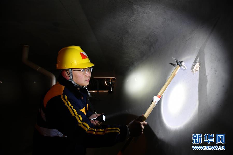 1月3日,中國鐵路濟(jì)南局臨沂工務(wù)段工程技術(shù)員在沂河特大橋箱梁內(nèi)檢查。新華社記者 朱崢攝