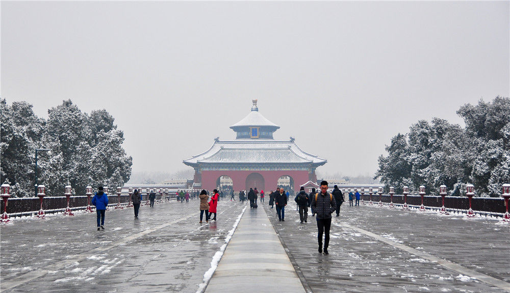 2019年11月30日,北京,初雪過后,天壇公園銀裝素裹,白雪古建相互映襯,景色迷人。時(shí)永平/千龍圖像/視覺中國