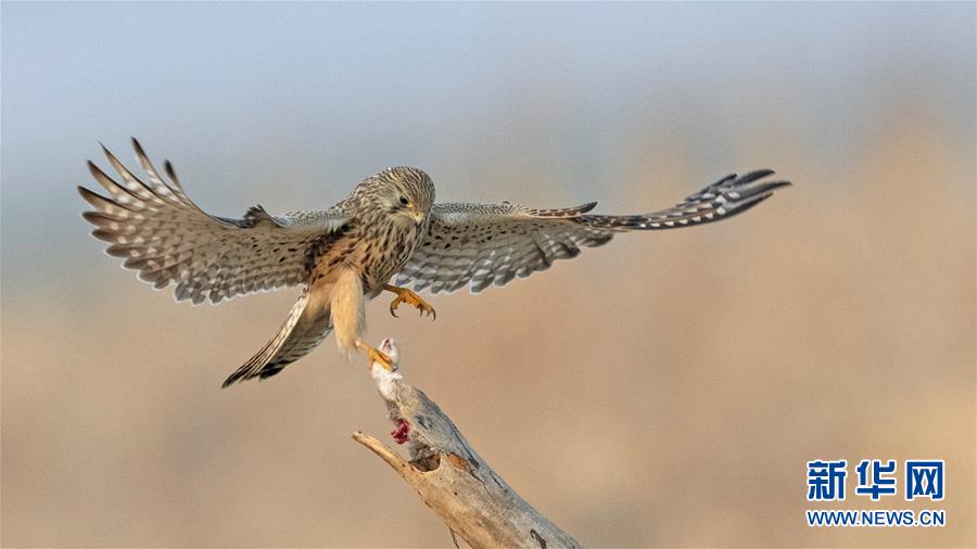 在河北省平山縣黃壁莊水庫拍攝的紅隼(2019年12月23日攝)。 新華社記者 梅永存 攝