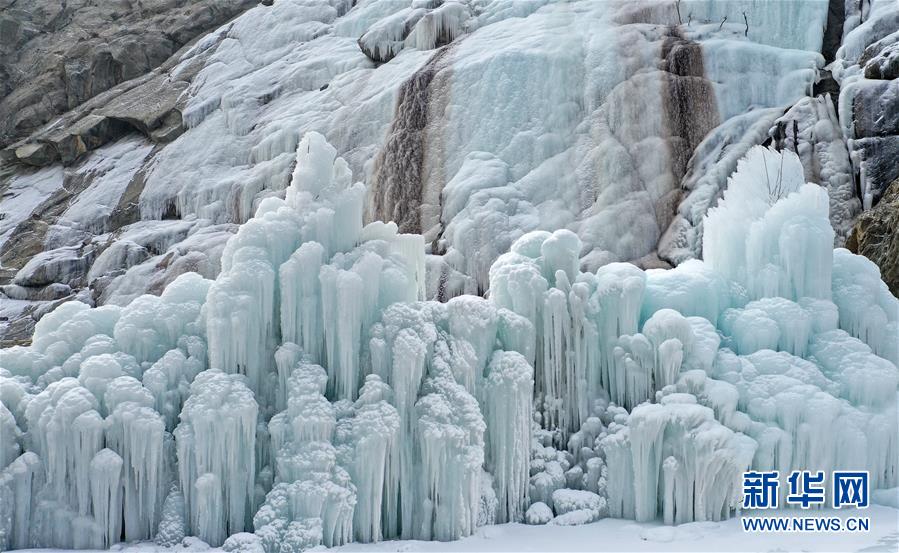 這是1月7日拍攝的賀蘭山巖畫景區(qū)內的冰瀑景觀。 新華社記者 王鵬 攝