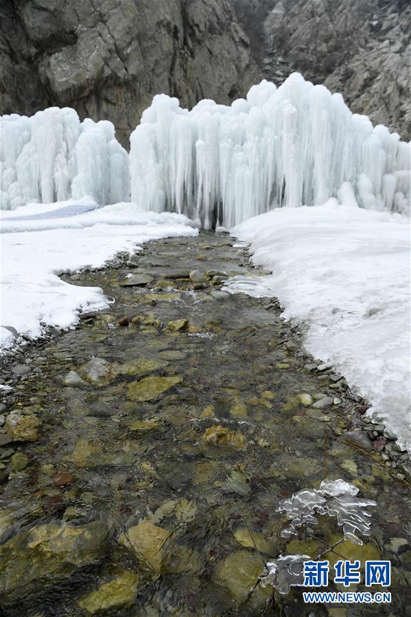 這是1月7日拍攝的賀蘭山巖畫(huà)景區(qū)內(nèi)的冰瀑景觀。 新華社記者 王鵬 攝