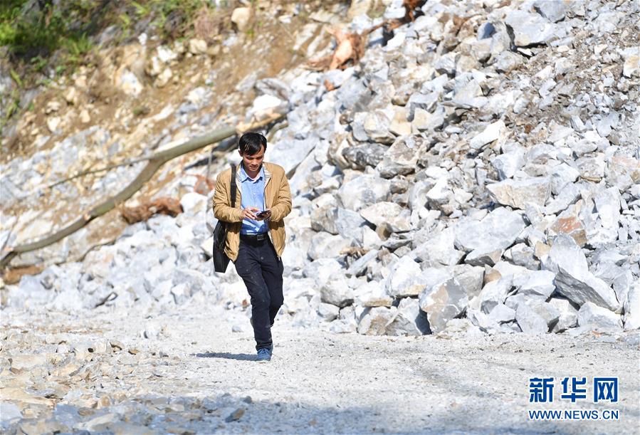 八好村駐村第一書記韋德王徒步前往群眾家中,開展扶貧工作(2019年12月16日攝)。新華社記者黃孝邦攝