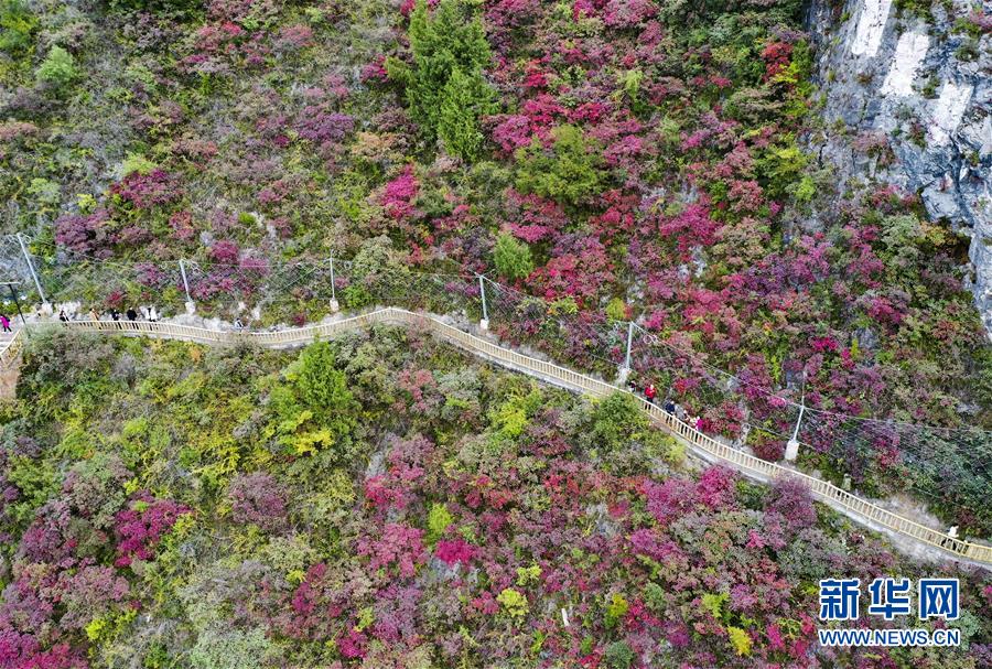 2019年11月23日,游客在位于長(zhǎng)江巫峽段的重慶巫山文峰景區(qū)游覽(無(wú)人機(jī)照片)。新華社記者王全超攝
