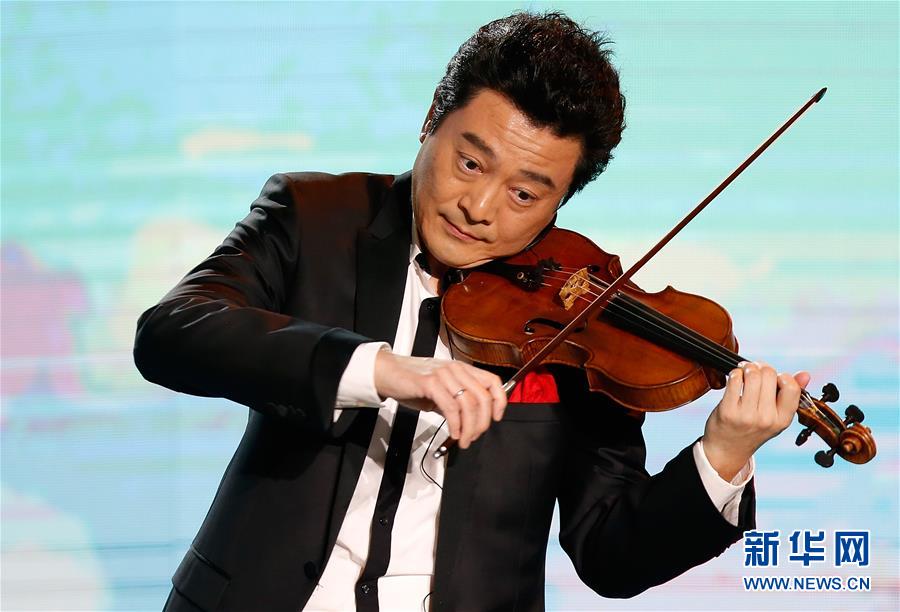 1月8日,呂思清在大聯(lián)歡中演奏小提琴。 新華社記者王麗莉攝