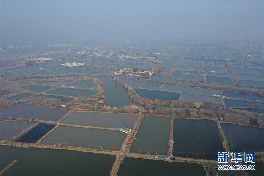 12月28日無(wú)人機(jī)拍攝的菱湖鎮(zhèn)的水產(chǎn)養(yǎng)殖魚(yú)塘。新華社記者黃宗治攝