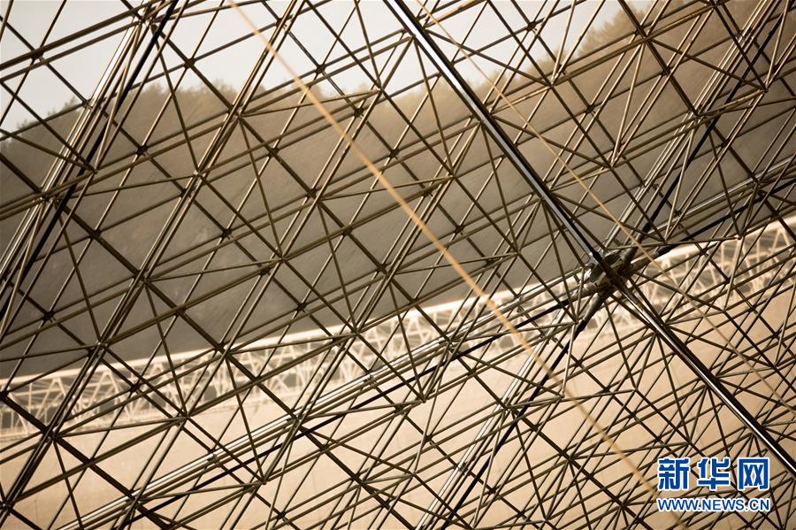 1月9日拍攝的“中國天眼”反射面板(檢修期間拍攝)。新華社記者劉續(xù)攝