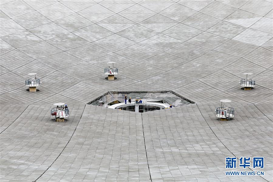 1月9日,工作人員對FAST反射面板進(jìn)行檢修。新華社記者劉續(xù)攝