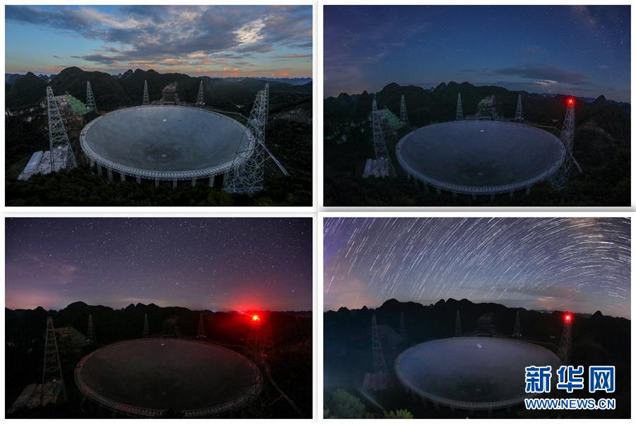 8月28日拍攝的不同光線環(huán)境下的“中國天眼”(拼版照片,檢修期間拍攝)。新華社記者歐東衢攝
