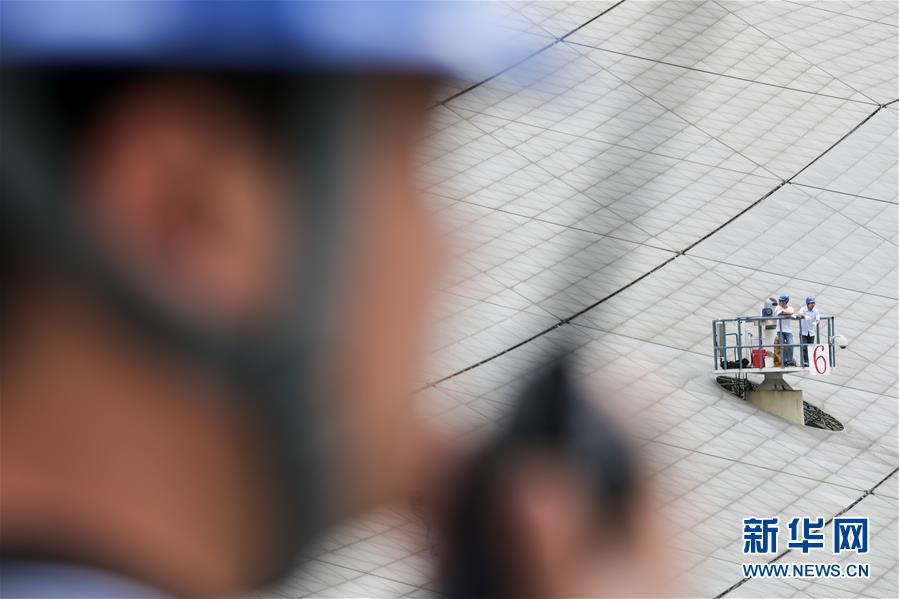 8月28日,工作人員在“中國天眼”內(nèi)進(jìn)行檢修。新華社記者歐東衢攝