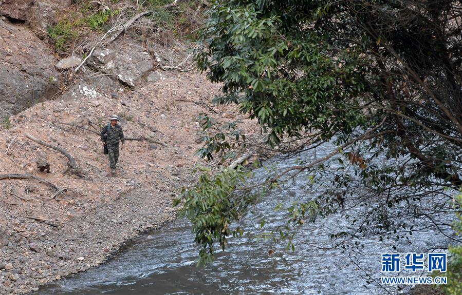在江西九連山國家級自然保護區(qū),陳志高帶著他的相機準備過一條小河進入密林深處拍攝鳥類(1月8日攝)。新華社記者 彭昭之 攝