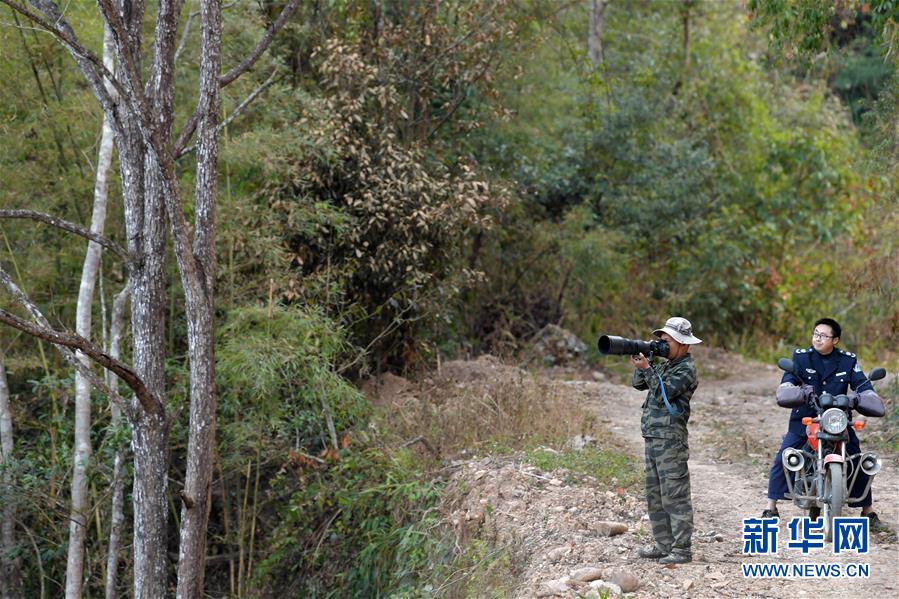 在江西九連山國家級自然保護區(qū),陳志高在山里觀測拍攝(1月8日攝)。新華社記者 彭昭之 攝