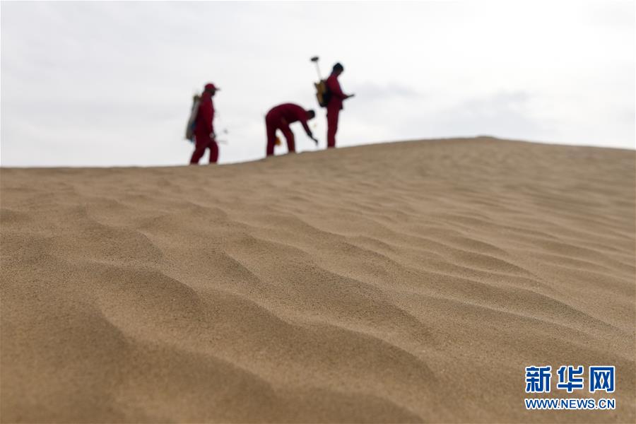 1月13日,測量工在測線上布設(shè)炮點樁號。地球物理勘探是油氣開發(fā)的第一步,相當(dāng)于給地球做CT。物探工人按照嚴(yán)格的測線部署,在相應(yīng)位置鉆井,然后實施地震,采集地震波數(shù)據(jù)??蒲腥藛T通過數(shù)據(jù)組成的“CT片”,就能夠清晰地“看”到地下的地質(zhì)結(jié)構(gòu),判斷哪里埋藏有石油或者天然氣。2019年10月,東方地球物理勘探有限責(zé)任公司塔里木物探處2113隊進(jìn)入新疆塔克拉瑪干沙漠腹地,開始中古14-21、塔中2兩個區(qū)塊的三維地震勘探。近2000名物探工人將在1000平方公里的范圍內(nèi)一直工作到2020年4月,這也意味著他們將在塔克拉瑪干沙漠腹地連續(xù)度過第14個除夕夜。蘊藏著豐富石油天然氣資源的新疆塔克拉瑪干沙漠有“死亡之?!敝Q,氣候干燥,年降水量在50毫米以下,冬季地表最低溫度超過零下30攝氏度,是世界油氣勘探難度最大的地區(qū)之一。為避開風(fēng)季,物探工人每年9、10月份進(jìn)入沙漠,一直工作到來年4月,夜以繼日與黃沙、嚴(yán)寒為伴,用辛勤的汗水,為祖國找油找氣。新華社記者丁磊攝