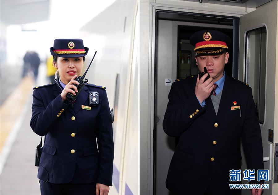 拼版照片左圖:在臨汾西站,列車長(zhǎng)陳海燕通過對(duì)講機(jī)了解各個(gè)車廂的上車情況(新華社記者詹彥1月11日攝);右圖:在太原開往青島北的K884次列車上,列車長(zhǎng)趙耀通過對(duì)講機(jī)了解各個(gè)車廂的情況(新華社記者楊晨光1月11日攝)。