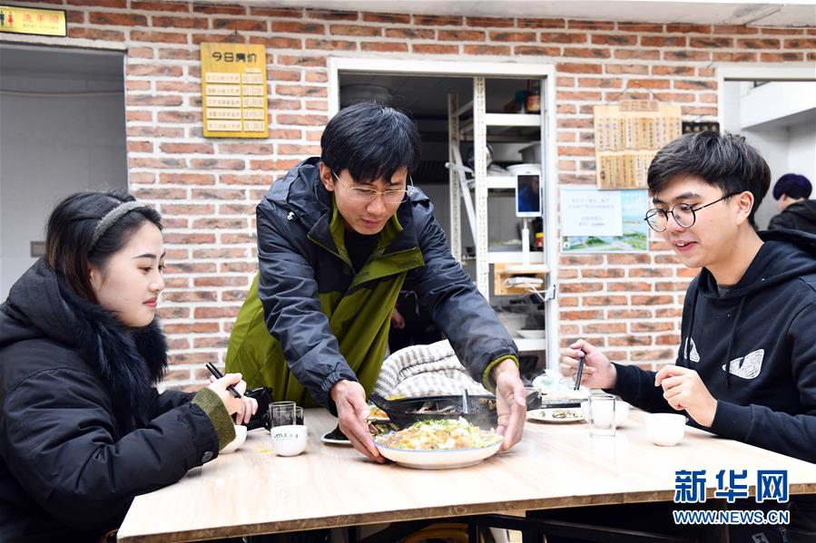 在榮成市煙墩角村,于海洋為游客上菜(1月12日攝)。新華社記者 郭緒雷 攝