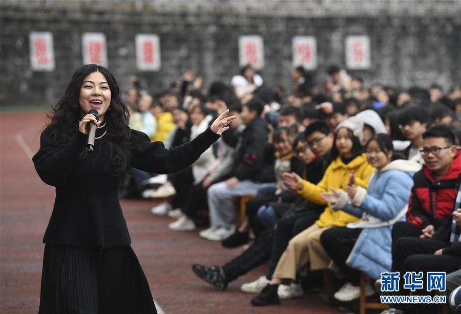 1月15日,中央歌劇院女高音歌唱家蔡楠在慰問演出中演唱。 當(dāng)日,“我們的中國(guó)夢(mèng)”——文化進(jìn)萬家中央歌劇院文藝小分隊(duì)來到重慶市石柱土家族自治縣第一職業(yè)學(xué)校進(jìn)行慰問演出,為學(xué)校的三千多名師生帶來了一場(chǎng)精彩的音樂大餐。 新華社記者 王全超 攝