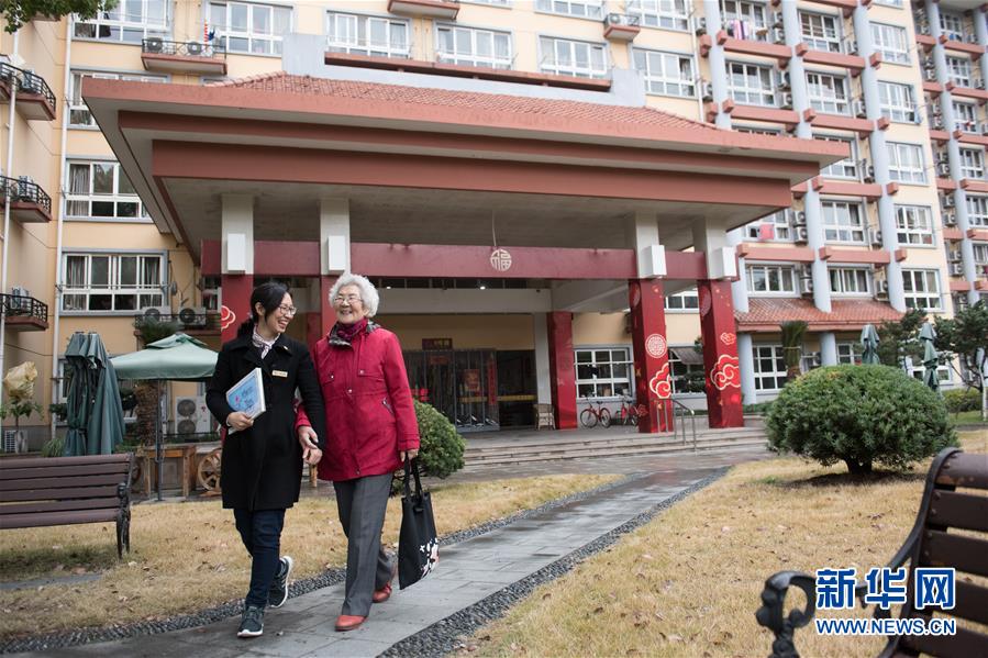 1月17日,一上午的活動(dòng)結(jié)束,張丹俠(左)帶著王育華回杭州市社會福利中心的宿舍。新華社記者 翁忻旸 攝