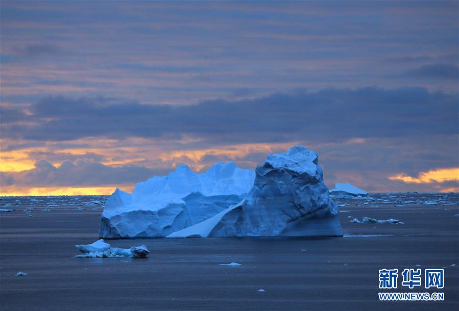 南大洋上的午夜冰山(2019年12月16日攝)。新華社記者劉詩平攝