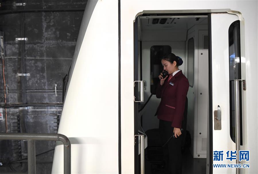 劉慧君在南寧軌道交通1號線上駕車行駛(1月16日攝)。新華社記者周華攝