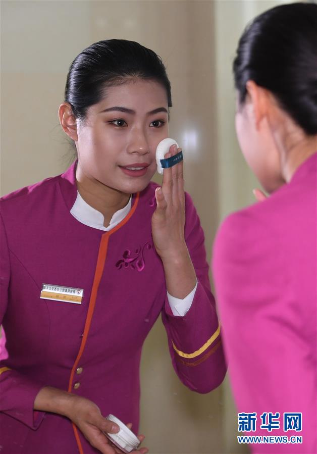 吉如在鏡子前化妝,帶著滿(mǎn)滿(mǎn)的笑意開(kāi)啟一天的工作(1月15日攝)。新華社記者陶明攝