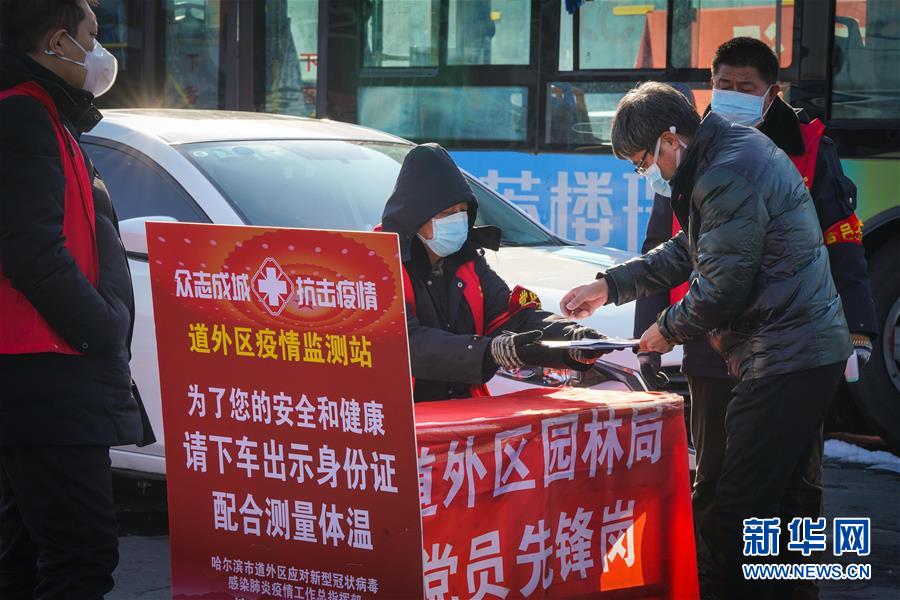 2月24日,工作人員在哈同高速公路哈爾濱收費站為車輛人員登記。 新華社記者 王松 攝