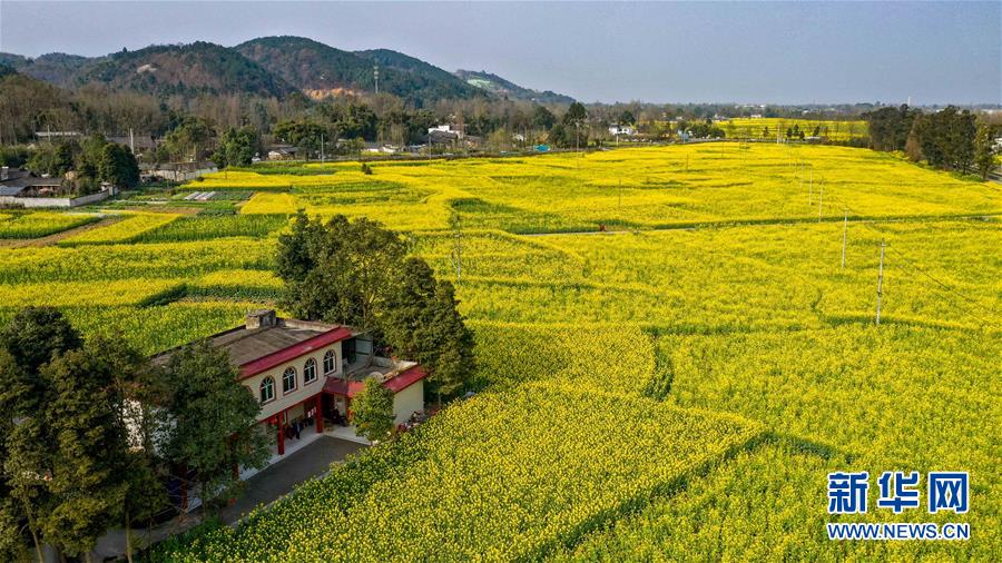 2月25日在四川省崇州市拍攝的油菜花田(無人機照片)。 新華社記者 王曦 攝