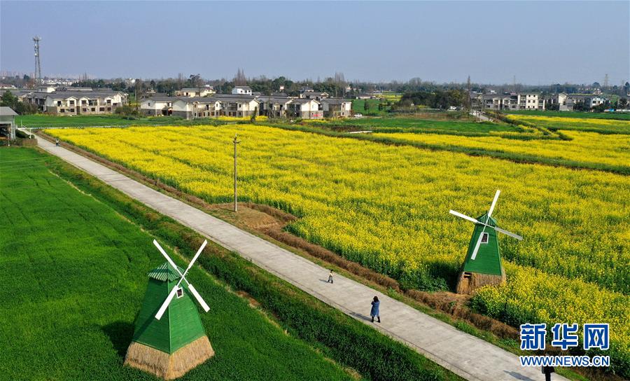 2月25日在四川省崇州市農(nóng)業(yè)產(chǎn)業(yè)功能區(qū)拍攝的油菜花田(無人機(jī)照片)。新華社記者王曦?cái)z