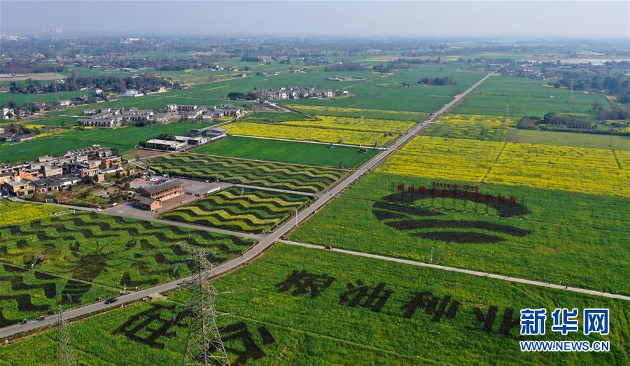2月25日在四川省崇州市農(nóng)業(yè)產(chǎn)業(yè)功能區(qū)拍攝的油菜花田(無人機(jī)照片)。初春時節(jié),正值農(nóng)時。成都平原西部的大邑、崇州等縣市油菜長勢良好,一片生機(jī)盎然的景象。新華社記者王曦攝