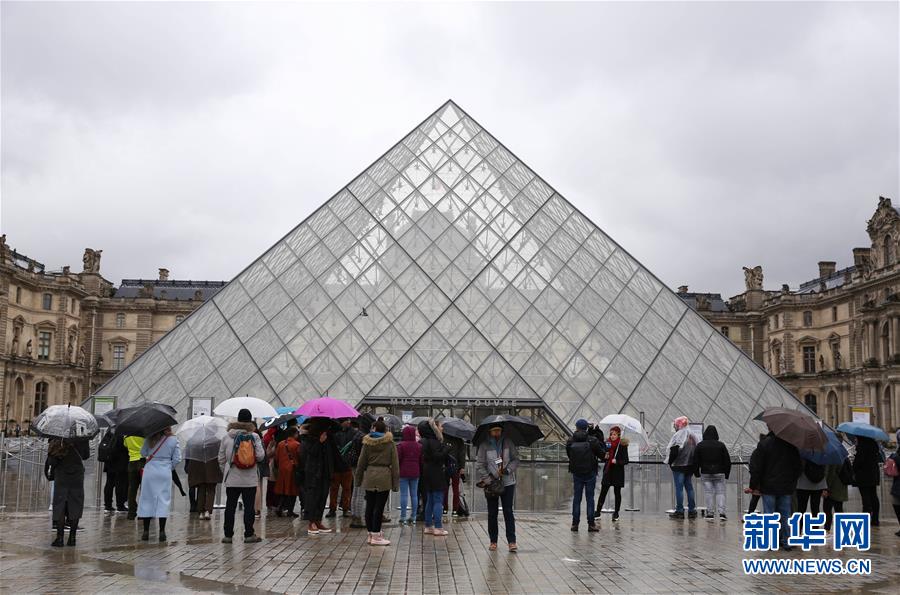 3月2日,在法國巴黎,人們在盧浮宮外了解開館信息。新華社記者 高靜 攝