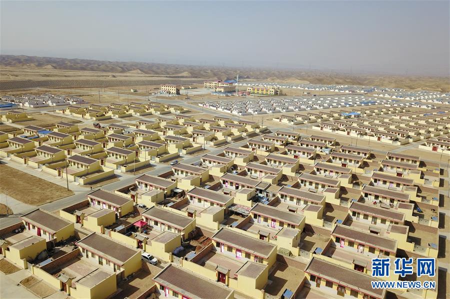 這是3月4日在靖遠(yuǎn)縣石門鄉(xiāng)路莊村易地扶貧搬遷搬入地——三灘鎮(zhèn)銀灘村拍攝的居民住宅(無人機(jī)照片)。新華社記者 范培珅 攝