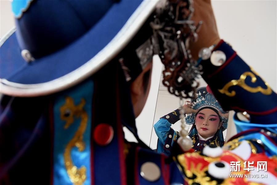 3月3日,李金玲在鄭州文化館通過(guò)直播的形式進(jìn)行帶妝表演豫劇《花木蘭》選段。李金玲是鄭州工程技術(shù)學(xué)院音樂(lè)舞蹈學(xué)院的教授,也是豫劇常派弟子。14歲開(kāi)始學(xué)習(xí)豫劇的她師從豫劇大師常香玉的次女陳小香。多年來(lái),除了本職工作教學(xué)外,她還作為文化志愿者,到各地義務(wù)表演、授課,致力于豫劇的傳承與發(fā)展。疫情防控期間,鄭州文化館展開(kāi)線上文藝戰(zhàn)“疫”,開(kāi)通網(wǎng)絡(luò)直播平臺(tái),李金玲也作為志愿者走進(jìn)“直播間”,進(jìn)行帶妝表演和教學(xué),精彩的“云”上表演吸引了不少戲迷的關(guān)注。“在這個(gè)特殊時(shí)期,通過(guò)直播的形式為大家表演,希望可以讓更多的人喜歡和了解豫劇,感受它獨(dú)特的魅力?!崩罱鹆嵴f(shuō)。新華社記者 李安 攝