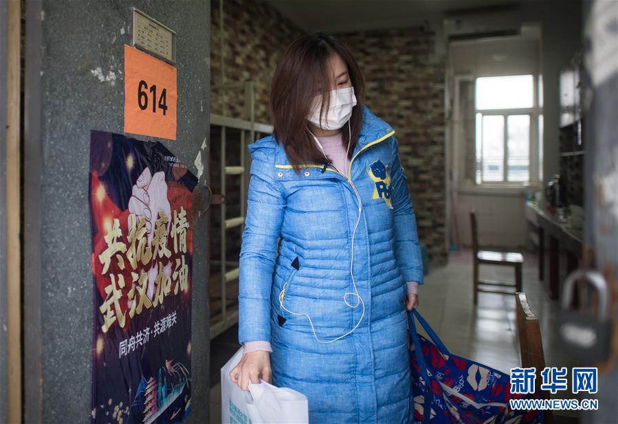 3月12日,黎婧收拾完行李,走出這間待了14天的房間。 3月12日,插畫師黎婧和84位病友離開自己居住的武漢軟件工程職業(yè)學(xué)院康復(fù)驛站,回到自己家中。他們都是治愈出院的新冠病毒肺炎患者,已經(jīng)在武漢軟件工程職業(yè)學(xué)院康復(fù)驛站進行了14天醫(yī)學(xué)觀察,達到醫(yī)學(xué)標(biāo)準,成功解除隔離。他們由專車運送至所屬社區(qū)附近的集散點后,在社區(qū)工作人員的陪同下回家。 新華社記者 肖藝九 攝