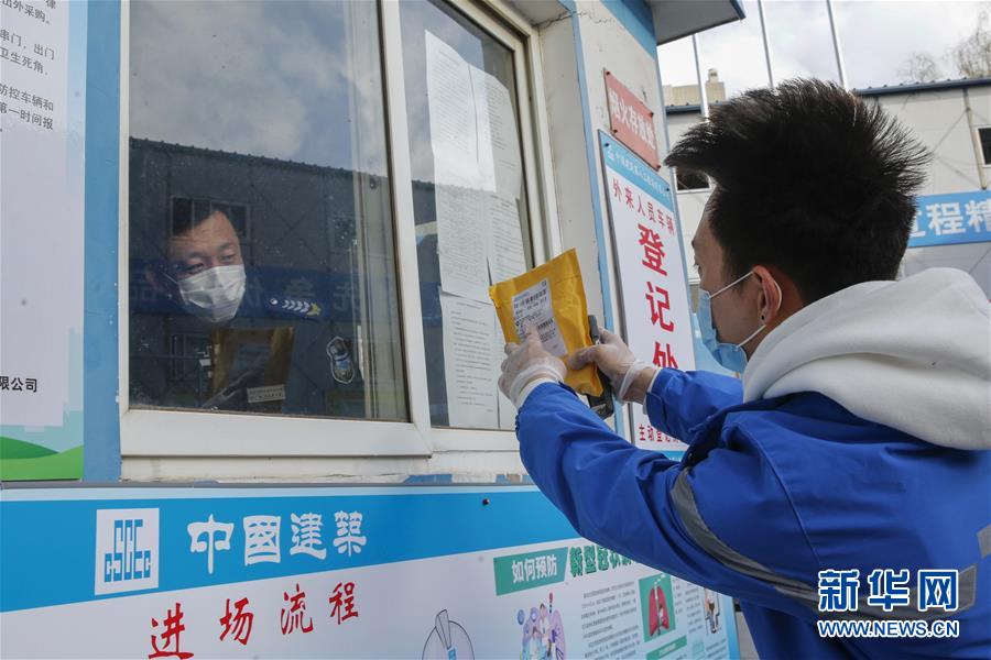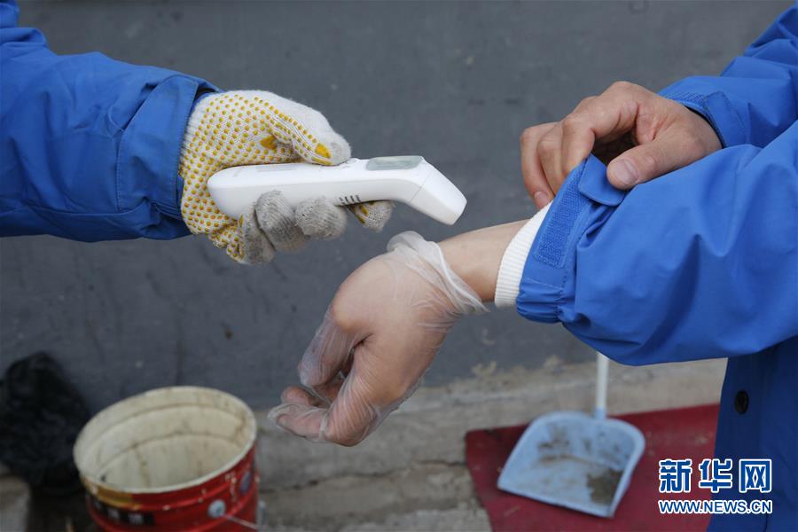 3月12日,李杰在中通快遞北京廠洼路網(wǎng)點上崗前檢測體溫。新華社記者張玉薇攝