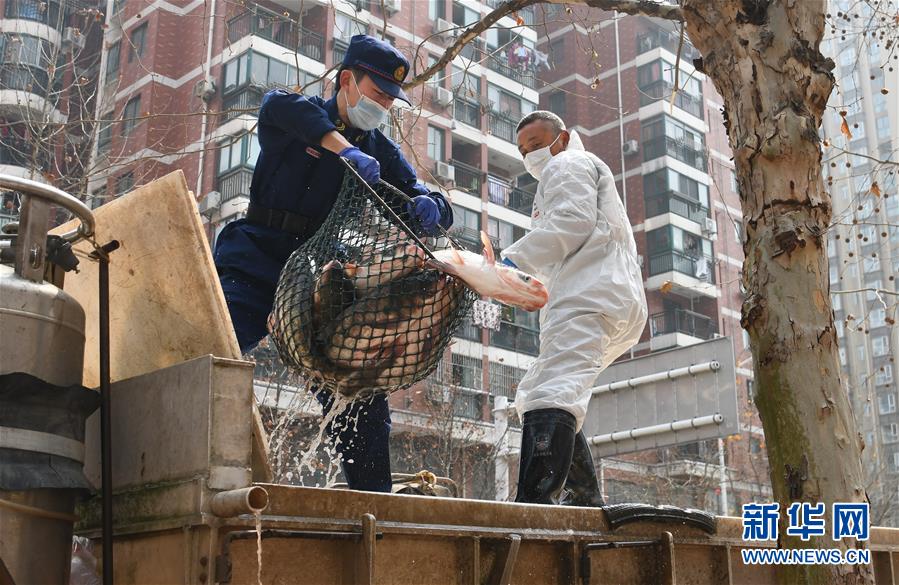 3月13日,一批運(yùn)到武漢市硚口區(qū)華生漢口城市廣場社區(qū)的活魚正在卸貨。當(dāng)日,首批100噸調(diào)配自湖北省咸寧市的活魚運(yùn)抵武漢市硚口區(qū)11個(gè)街道下轄社區(qū)。咸寧是魚米之鄉(xiāng),水產(chǎn)資源豐富。此次戰(zhàn)疫咸寧得到了全國人民的支持,疫情得到良好控制。咸寧送魚,希望傳遞愛心,支持武漢早日戰(zhàn)勝疫情。新華社記者程敏攝