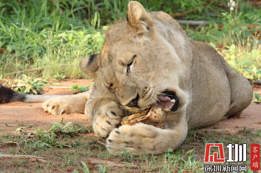 肯尼亞獅子捉了只烏龜當“零食” 啃不到肉肉好生氣!