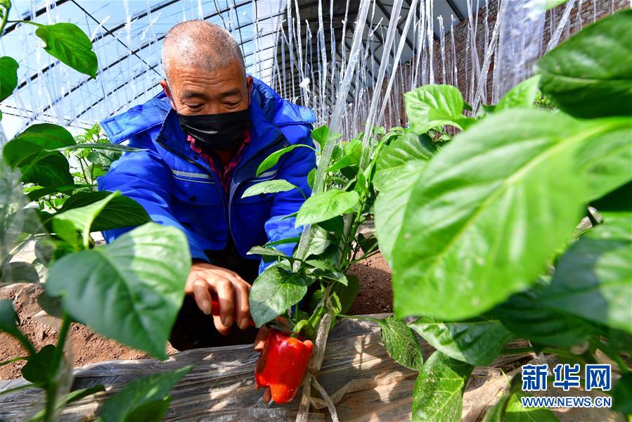 3月18日,在中國鐵路太原局集團(tuán)有限公司新創(chuàng)云竹生態(tài)農(nóng)業(yè)園,農(nóng)民在采摘辣椒。新華社記者 曹陽 攝