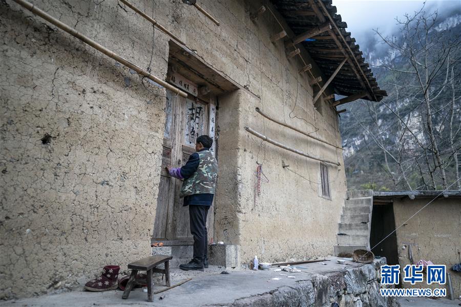 云南省永善縣大興鎮(zhèn)駱丘村村民晏付高關(guān)上老屋的大門(mén)準(zhǔn)備離開(kāi)(3月14日攝)。 新華社記者 江文耀 攝