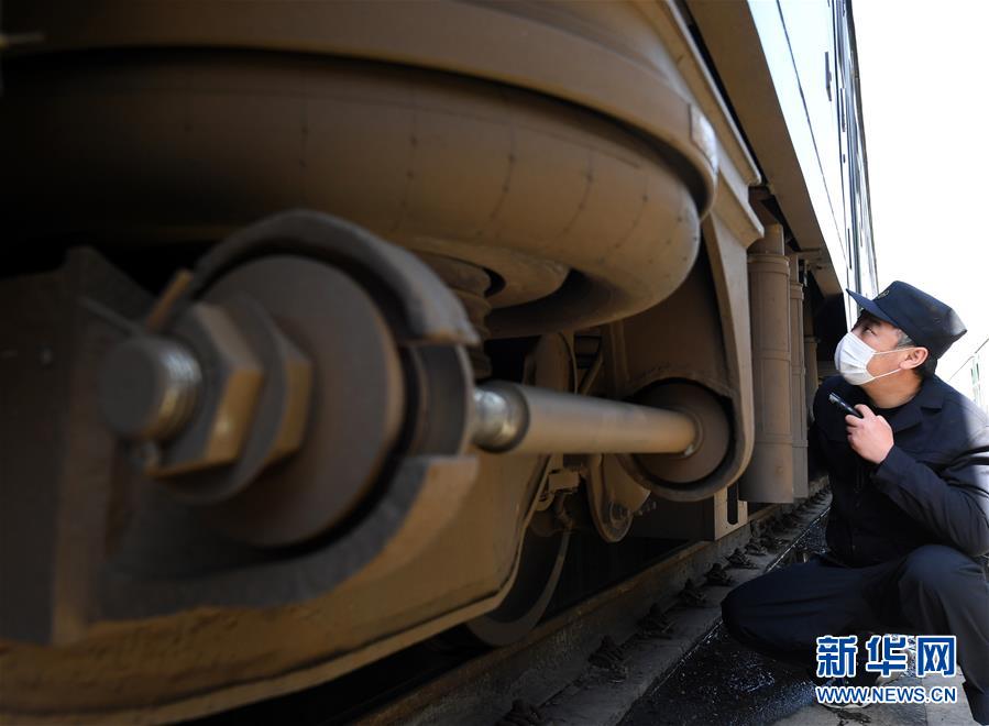 3月19日,鄭州車輛段庫(kù)檢車間值班主任張伯季在對(duì)客車下部設(shè)施進(jìn)行檢查。新華社記者 李安 攝