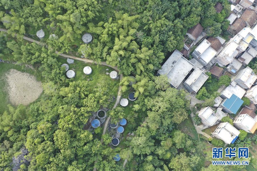 圖為位于廣西隆安縣都結(jié)鄉(xiāng)隴選村后山上的原生水潭和地頭水柜(無人機照片,2019年10月16日攝)。廣西有近一半貧困人口生活在石漠化地區(qū),涉及數(shù)十個縣區(qū)。這里也是廣西飲水保障程度最低的地區(qū),解決貧困人口飲水問題是廣西脫貧攻堅戰(zhàn)“硬仗中的硬仗”。“十三五”以來,廣西加快實施農(nóng)村飲水安全鞏固提升工程。因地制宜,采取新建、擴建及管網(wǎng)延伸等多種措施,補齊貧困地區(qū)水利薄弱短板,進一步提升石漠化地區(qū)群眾飲水安全保障水平,助推脫貧攻堅。新華社記者曹祎銘攝