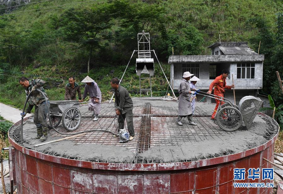 在廣西都安瑤族自治縣龍灣鄉(xiāng)龍煥村大朋屯,當?shù)厝罕娫谛藿ㄋ瘢?019年7月23日攝)。廣西有近一半貧困人口生活在石漠化地區(qū),涉及數(shù)十個縣區(qū)。這里也是廣西飲水保障程度最低的地區(qū),解決貧困人口飲水問題是廣西脫貧攻堅戰(zhàn)“硬仗中的硬仗”?!笆濉币詠?,廣西加快實施農(nóng)村飲水安全鞏固提升工程。因地制宜,采取新建、擴建及管網(wǎng)延伸等多種措施,補齊貧困地區(qū)水利薄弱短板,進一步提升石漠化地區(qū)群眾飲水安全保障水平,助推脫貧攻堅。新華社記者陸波岸攝