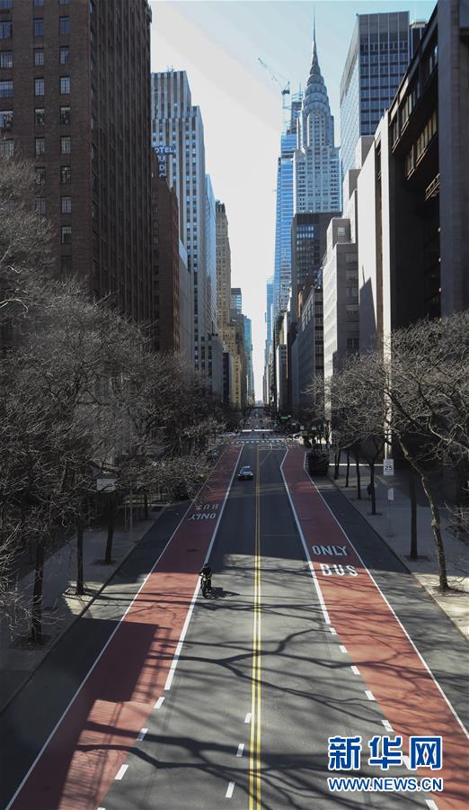 3月21日,在美國(guó)紐約,以往繁忙的街道上車輛寥寥。美國(guó)紐約州、伊利諾伊州、康涅狄格州20日發(fā)布針對(duì)本州居民的“居家令”,以遏制新冠病毒傳播。這些“居家令”涵蓋紐約、洛杉磯、芝加哥等大城市,影響數(shù)千萬人。白宮20日發(fā)表聲明說,總統(tǒng)特朗普已宣布紐約州出現(xiàn)“重大災(zāi)難”,命令聯(lián)邦政府支援該州抗擊新冠肺炎疫情。新華社記者王迎攝