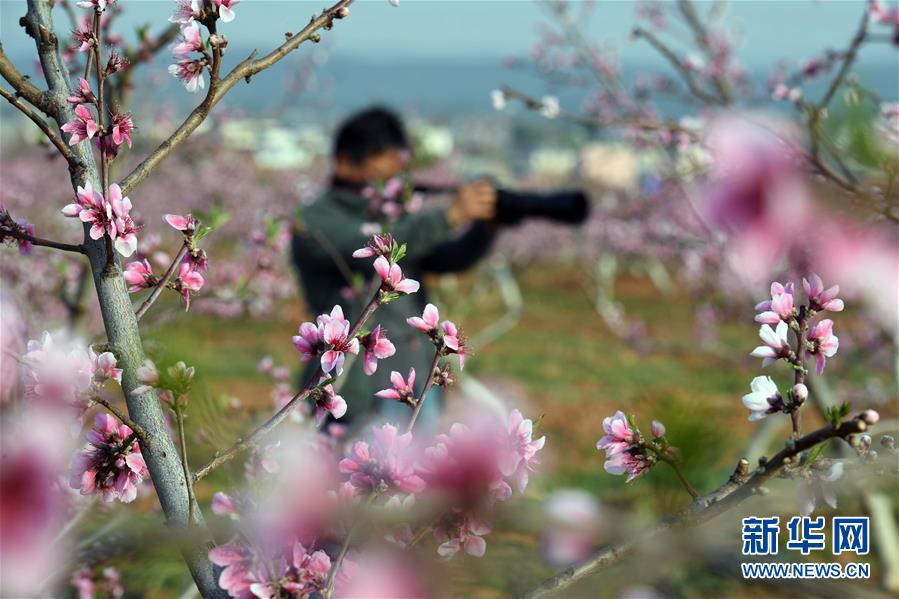 3月22日,游客在云南省曲靖市沾益區(qū)盤江鎮(zhèn)河西村的果園里拍攝桃花。春季里,云南省曲靖市沾益區(qū)鄉(xiāng)村果園里的桃花梨花競(jìng)相綻放,景色秀美,吸引游人前來(lái)觀光。新華社記者楊宗友攝