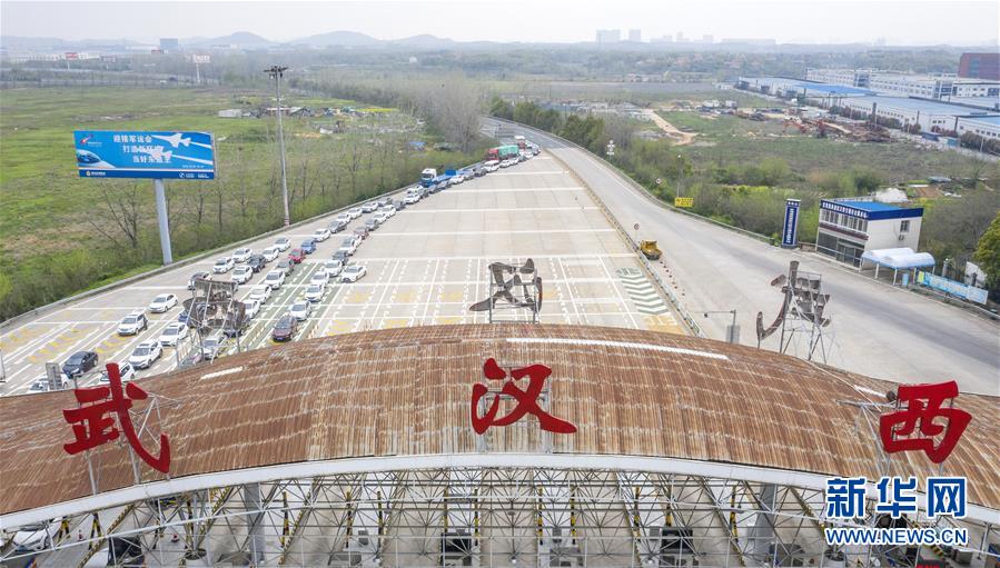3月24日,在武漢西高速收費站交通卡點,返漢車輛排隊等候入城(無人機照片)。當(dāng)日,湖北省新冠肺炎疫情防控指揮部發(fā)布通告說,湖北省除武漢市以外地區(qū),將于3月25日起解除離鄂通道管控,武漢市將于4月8日起解除離漢離鄂通道管控措施。隨著近日武漢部分企業(yè)逐漸復(fù)產(chǎn)復(fù)工,進(jìn)入武漢的返城務(wù)工人員陸續(xù)增多,車輛在武漢西高速收費站交通卡點有序排隊返回武漢。工作人員對返城人員檢查體溫,并核查證明健康的“綠碼”和身份證后放行。新華社記者才揚攝