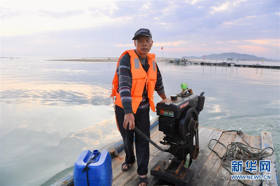3月26日,福建漳州東山縣岐下村村民陳炎松駕駛著小舢板由魚骨沙洲景點(diǎn)返回碼頭。新華社記者姜克紅攝
