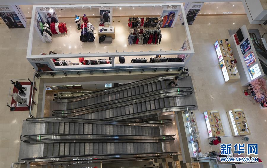 3月30日,在武商國際廣場,顧客乘坐滾梯。當(dāng)日,武漢市多家商場開門迎客。新華社記者費(fèi)茂華攝